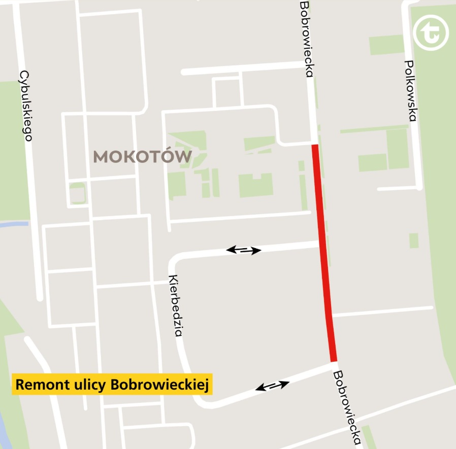 Mokotowscy drogowcy w środę, 8 października, około godziny 9:00, rozpoczną roboty od wymiany chodników i krawężników. Po obu stronach ulicy, pomiędzy Jedwabniczą a Kierbedzia, będą miejscami zwężali jezdnię. W czasie prac wygrodzą po kilka miejsc parkingowych. Dodatkowo, w tym etapie robót, przystanek autobusowy Bobrowiecka, w kierunku alei Witosa, zostanie przeniesiony bliżej Jedwabniczej.